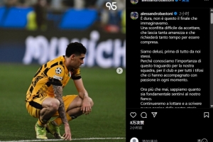 巴斯托尼社媒谈欧冠决赛失利:将继续战斗,书写故事的新篇章